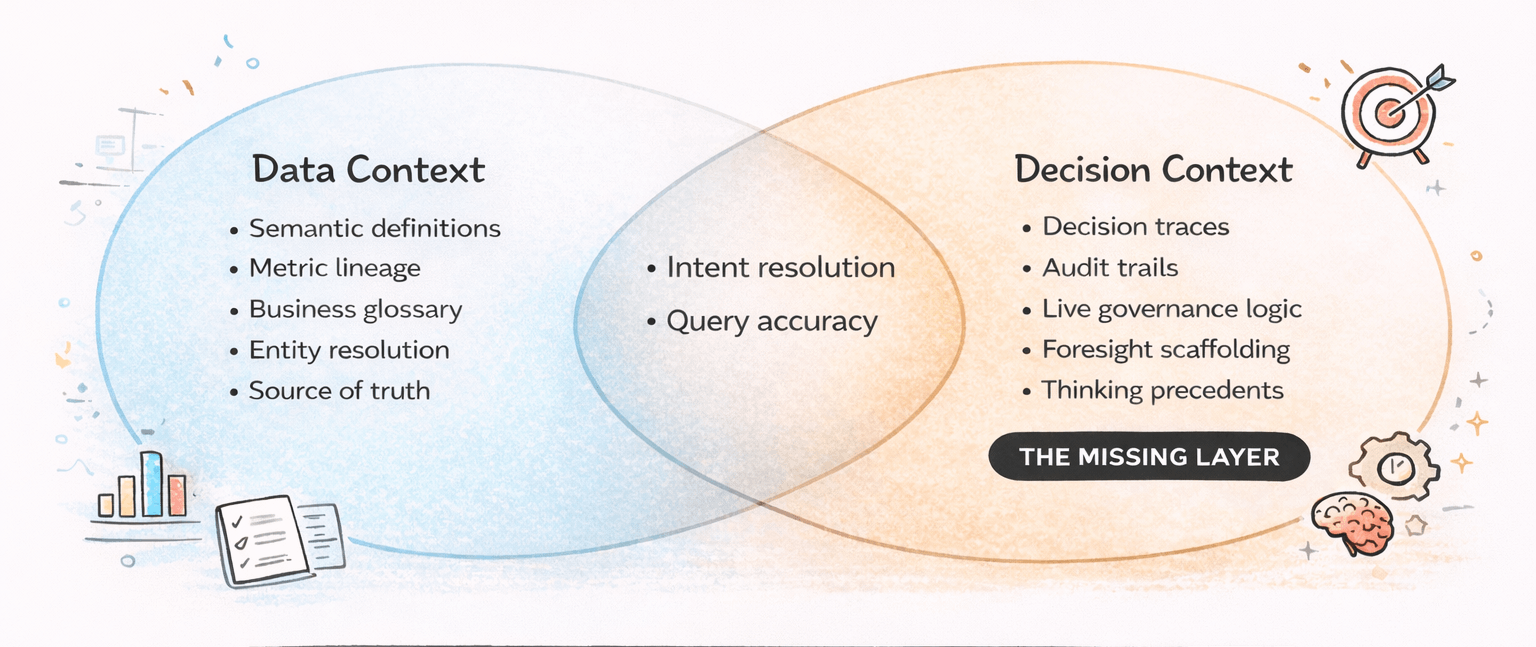 Decision context doesn't replace data context. It sits on top of it, draws from it, and makes it more powerful. You need both. But the decision layer is the one that turns accurate information into useful guidance - and it's the one that has never existed in any enterprise system.